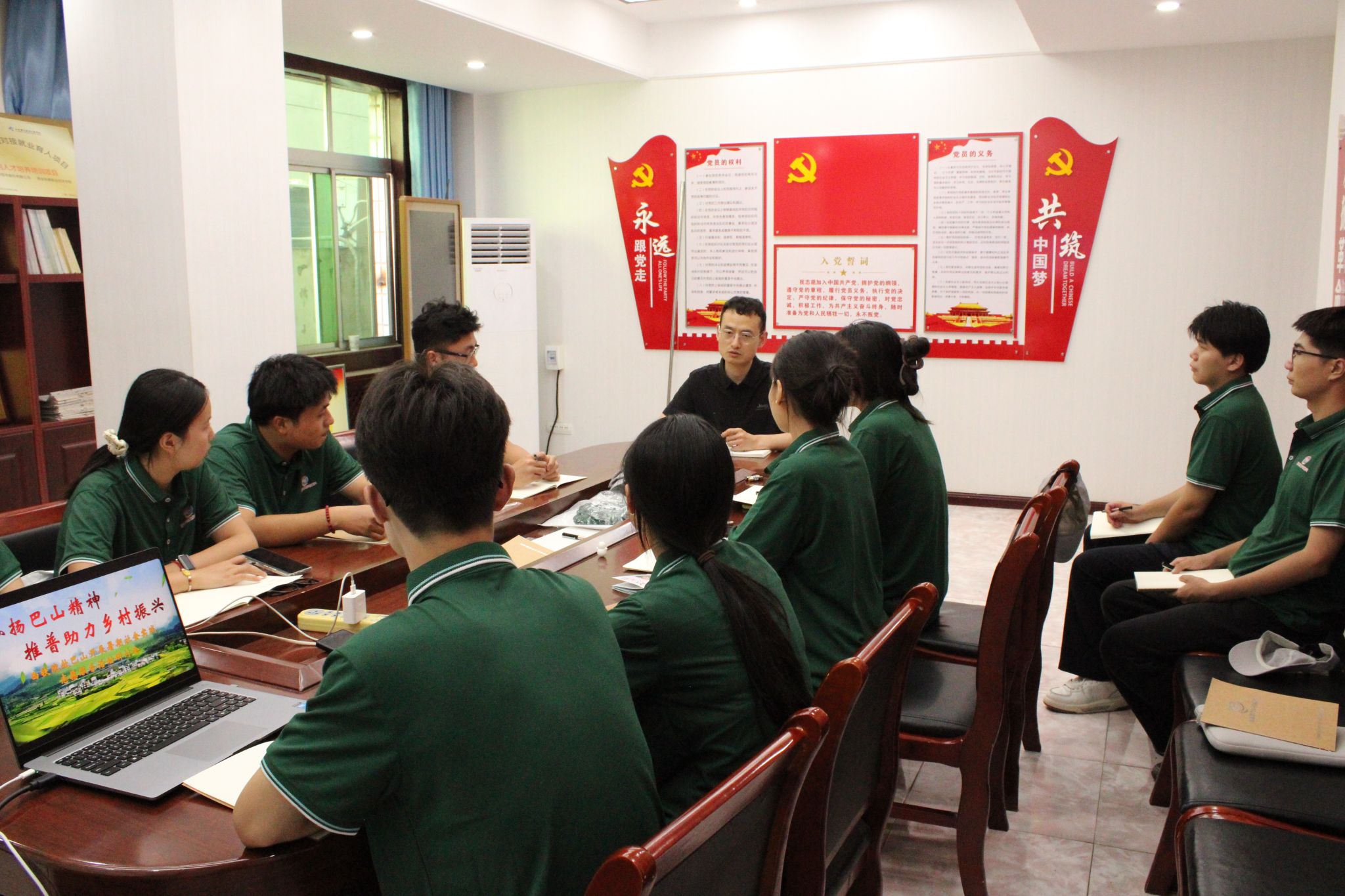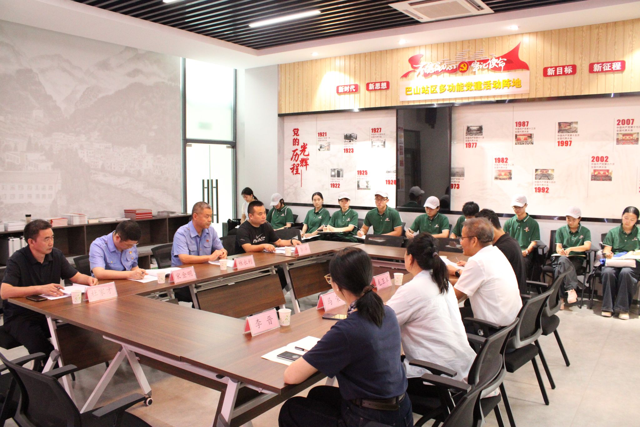 刚到巴山,师生们没急着开展活动,而是先开了一场“四方座谈会”——巴山镇政府副书记李华、党政办主任杨楠,安康工务段党委书记柳青、副书记林永利、巴山工务车间党总支书记宋金明,巴山小学杜家才老师,与西铁院团队围坐一堂,把“需求” 摆上台面:
