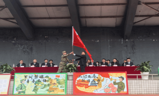 最后,安学武为军训团授旗,他代表西铁院向教官们表示崇高的敬意和衷心的感谢。