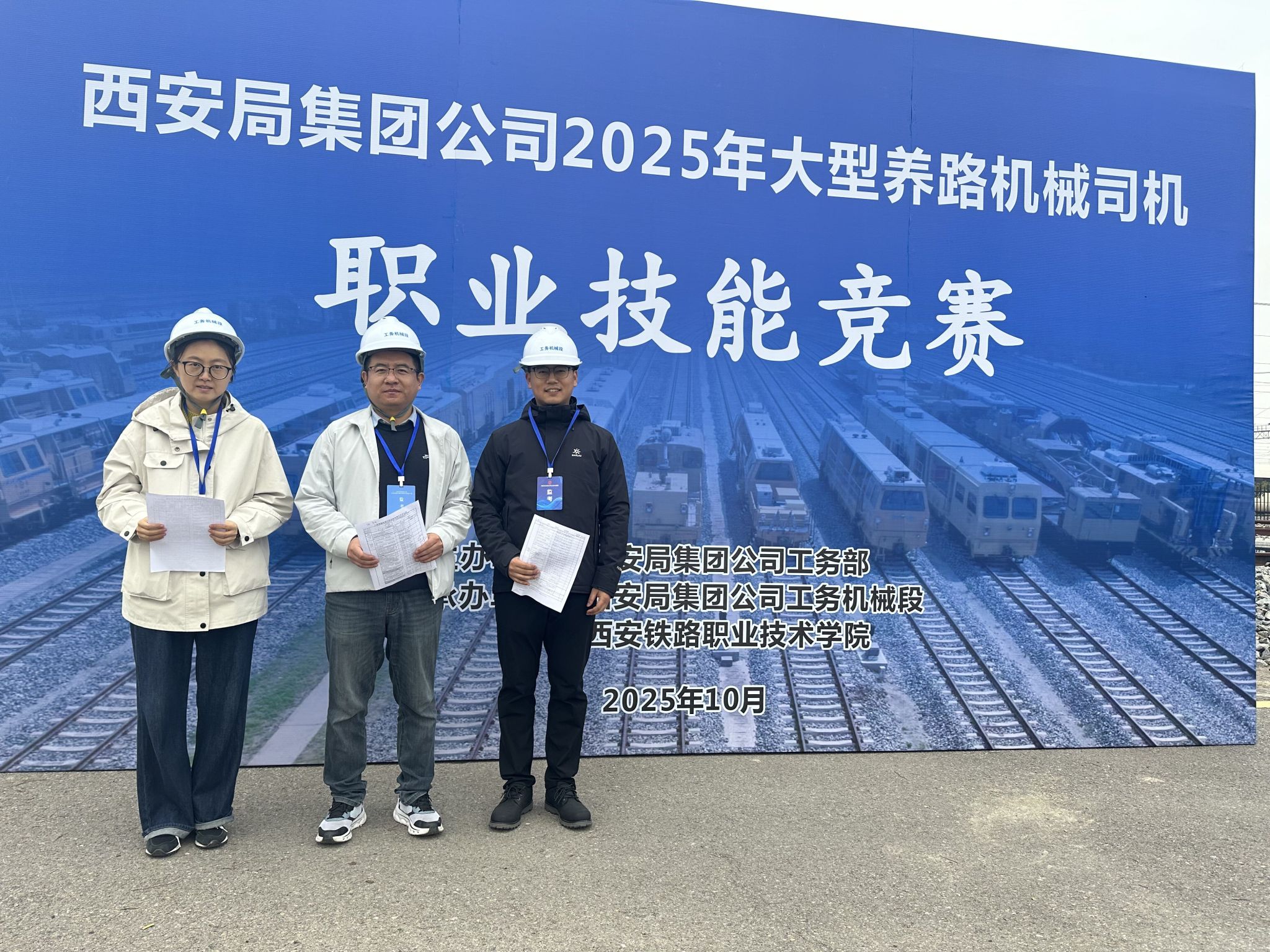 为深入贯彻落实科技、教育、人才一体化发展理念,持续推进校企合作与产教融合走深走实,2025年10月23日至26日,由西安局集团公司工务部、劳卫部、职培部联合主办,工务机械段与西铁院共同承办的“西安局集团公司2025年大型养路机械司机职业技能竞赛”在工务机械段成功举办。本次竞赛以提升铁路现代化职工职业素养和技术技能水平为核心目标,着力打造大型养路机械司机高素质技能人才练兵场。机电工程学院院长郭峰出席竞赛开幕式,学院教师李菁、银奎帮和高峰全程参与赛事组织与执裁工作,充分彰显了校企协同育人的深度融合与实效。