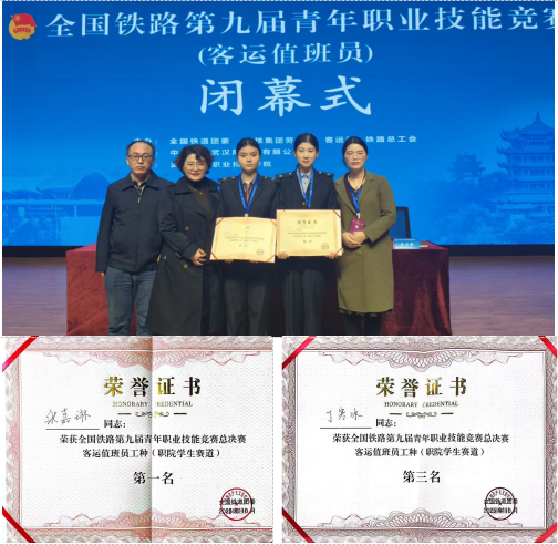 金秋十月,捷报传响。在刚刚落幕的全国铁路第九届青年职业技能竞赛客运值班员总决赛中,必赢bwin线路检测中心交通运输学院2人派出队表现卓越,张嘉琳同学荣获院校组第一名,丁寒冰同学斩获院校组第三名!她们与来自全国24所铁路院校的47名选手同场竞技,凭借扎实功底与稳定发挥,双双跻身前列,充分展现了必赢官网学子的专业风采。