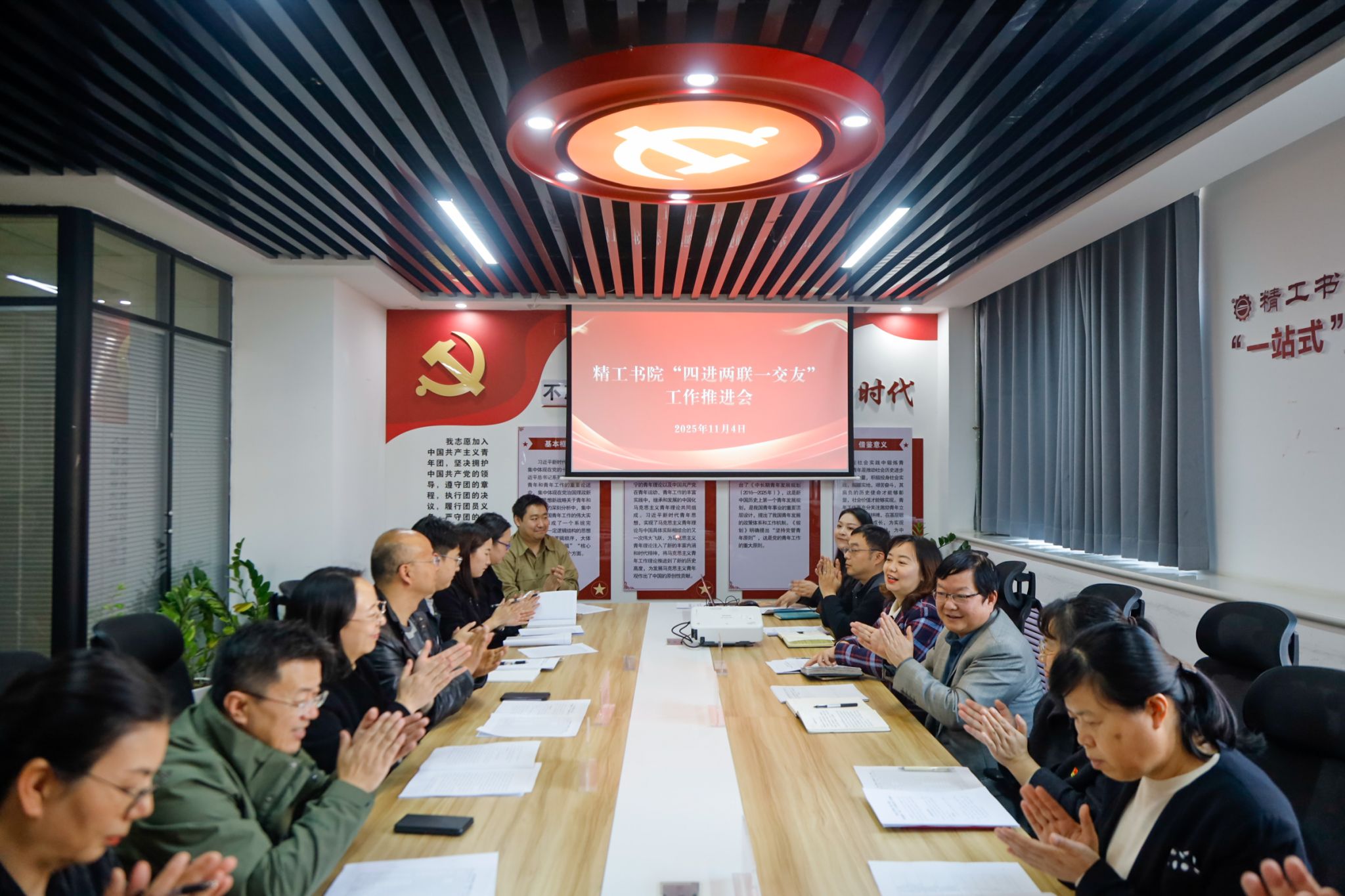 为进一步推动学院教育管理力量下沉学生一线,深入推进学院“四进两联一交友”工作,11月4日,机电工程学院(精工书院)在党团活动室召开“四进两联一交友”工作推进会。学院党委组织部、教务处、教科研处、安保处、国资处、基础部主要负责人及教职工代表,以及机电工程学院党总支书记、副院长、各教研室教职工代表、学生代表等20余人参加了此次会议。会议由机电工程学院党总支副书记韩臻主持。