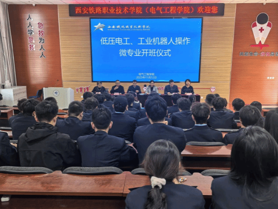 仪式上,微专业负责人蔡文君、王丹分别介绍了低压电工、工业机器人操作的教学安排。马纪副书记宣读了学生管理要求;城轨交通供配电技术2401班学生徐灿代表学生发言,表达了珍惜学习机会、勤练技能、融会贯通的决心,展现出积极向上的学习态度。