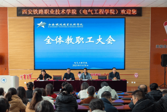11月26日,电气工程学院召开全体教职工大会,聚焦党建学习、技能竞赛备战、办学能力评价迎检及“四进两联一交友”等核心任务,系统部署工作安排、明确责任分工与时间节点,以统筹联动推动学院党建与教学事业高质量发展。会议由学院院长王秀丽主持,领导班子成员及全体教职工参加。