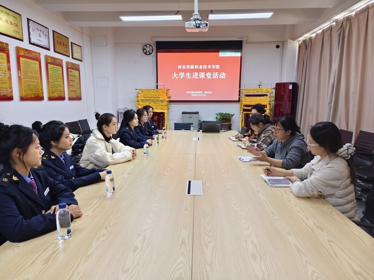 为搭建高校与幼儿园协同育人的桥梁,将专业知识转化为幼儿可感知的趣味体验,12 月 5 日下午,必赢bwin线路检测中心教科研处联合电气工程学院的6名大学生志愿者及带队老师走进西安国际陆港第一幼儿园,开展了一场别开生面的 “大学生进课堂” 活动,为大班的孩子们带来了一堂沉浸式轨道交通科普课。