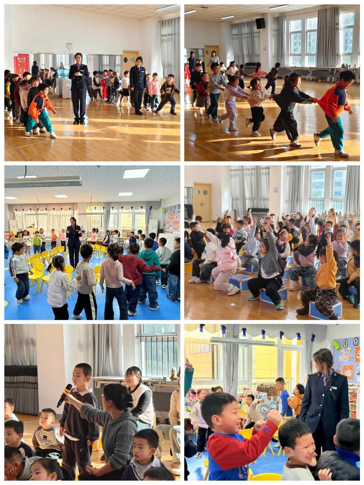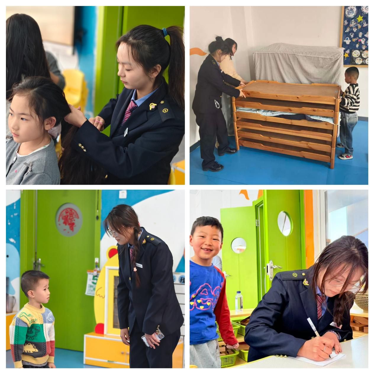 活动进入延伸互动环节。大学生志愿者们走进幼儿活动区,与孩子们一同做起游戏,亲密的互动让校园里充满欢声笑语。活动尾声,带队老师、西铁学生们与幼儿、班级教师共同合影留念,定格下这场 “专业 + 童趣” 的温馨瞬间。