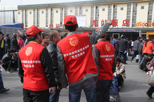 35日下午,院本部志愿者分两队前往北关十字、西安火车站开展志愿服务活动。红色的马甲,自信的微笑,充分展现了西铁院青年良好的精神风貌。