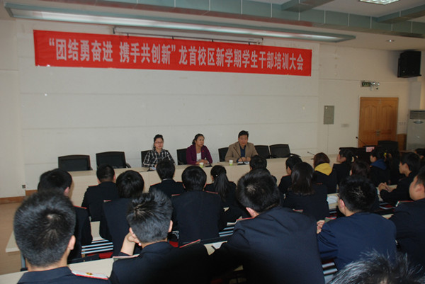 下午,龙首校区召开了“团结勇奋进携手共创新”为主题的新学期干部培训大会。校区党总支书记郭小莉、学工办主任高阿联、部分辅导员、班主任及学生会、团总支、社团联合会、班团干部近两百人参加了本次会议。会议由团委书记李妮主持。