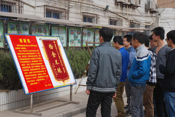 3月18日下午,一位来自西郊的中年男士怀着激动的心情,来到龙首校区将一面写有“拾金不昧”的锦旗和一封感谢信送到学工办。据失主叙述,16日傍晚他乘107路公交车外出办事,途中不慎将钱夹丢失,里面除了有几百元现金外,还有身份证、银行卡、医保卡以及重要票据等物,当时非常着急,正在银行准备挂失时,接到了必赢官网区321134班学生詹兰花、郭海婷打来的寻找失主电话,当时除了感激之外还非常感动。在学校大门口拿到钱包后想要答谢,被两位学生婉言谢绝,为此他特意来到学院,对詹兰花、郭海婷两位同学表示感谢,对培养了她们的学院领导表示感谢。