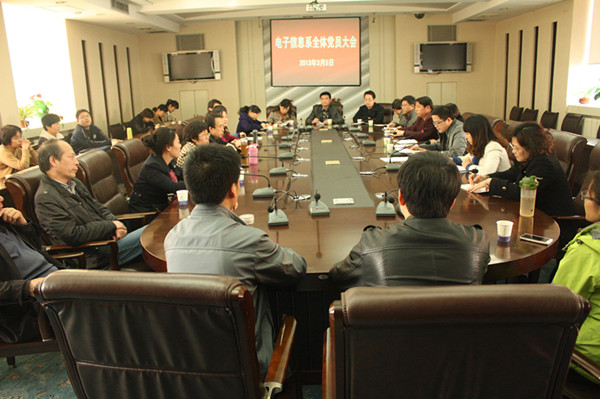 35日下午电子信息系在第三会议室召开党总支、支部换届选举宣传动员大会,该系全体党员参加了会议。