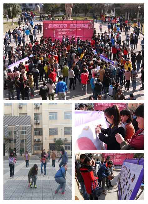 龙首校区团委开展了针对女学生的“踢毽子”、“跳绳”、“定点投篮” 等趣味比赛,同时在操场上竖起了“许愿树”宣传墙。