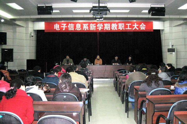 227上午,电子信息系在实验楼召开教职工大会,安排部署新学期各项工作。系主任孙津平、党总支书记张伟敏及全系教职工参加了会议。会议由系办主任刘新强主持。