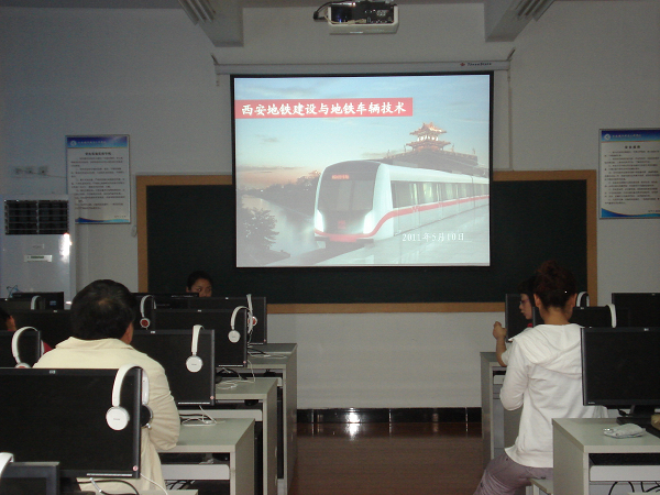 在讲座中青年讲师陈静老师详细介绍了西安地铁的建设规划、建设进度、西安地铁运营分公司的组织机构及地铁车辆所采用的先进技术。该讲座的举办使城轨车辆专业教师与西安地铁有了近距离地接触,同时也为提高西安地铁培训质量打下良好的基础。