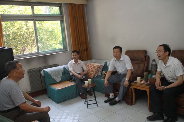 黄启成在了解了马传久同志的身体和生活情况后,感谢他为党的事业做出的贡献,并祝他身体健康,家庭幸福。安文中感谢马传久同志长期以来对学院发展的关心,希望他继续为学院的建设发展献计献策。交谈中,马传久回顾了学院的历史,希望学院今后的发展更快更好,同时对教育局领导和学院领导的看望表示衷心的感谢。