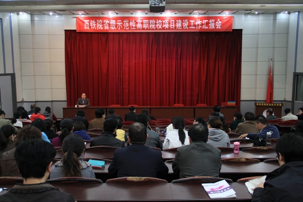 近日,学院在阶梯教室召开了省级示范项目建设第一阶段汇报会,学院特邀了湖南铁道学院教务处长张莹对六个示范项目汇报进行点评。全院各系部近300名教师听参加了会议,评建办主任马军强主持会议。