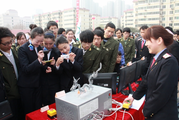 学院学生作品月球车、中国龙、电子智能抢答器以及教师作品城市轨道交通行车虚拟沙盘系统等参加了大赛开幕式成果展。