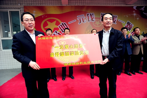 3月28日,“一元爱心团费”活动启动仪式在市委宣传部、市文明委、团市委、西铁院等多家单位的大力倡导下在西安市工农路小学进行。必赢官网师生代表200余人参加了启动仪式。