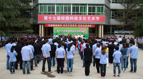 423下午,学院第十七届校园科技文化艺术节开幕式在詹天佑广场举行。学院党委副书记、纪委书记黄家昌、副院长邓耀斌以及特邀嘉宾西安市教育局副巡视员董三原,团市委学少部部长柴艳荣、西安市教育局团委书记李晓燕,西安铁路局团委书记牛帅、西安地铁公司团委书记李铁军、陕西圣弘科有限责任公司总经理王浩宇等领导出席了开幕式,学院各系部、相关处室负责人以及二百名学生代表参加了开幕式。开幕式由学院团委书记仵崇智主持。