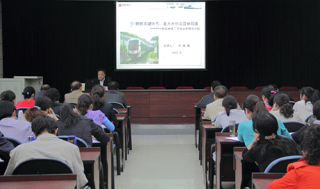 聘任仪式后,应交通运输系邀请,刘峻峰教授在大电教为近百名师生作了题为“狠抓关键环节,着力开创西安地铁运营新局面”的学术报告。刘教授用大量的现场图片、详实的统计数据和完整的运营案例,围绕西安地铁生产指挥体系,类比全国各大城市地铁公司的运营、服务和开源节流等情况,着重从企业目标与企业文化、西安地铁设备系统的组成、工作关键环节、运营工作中存在的不足等四个方面介绍了西安地铁二号线开通以来的基本运营情况。