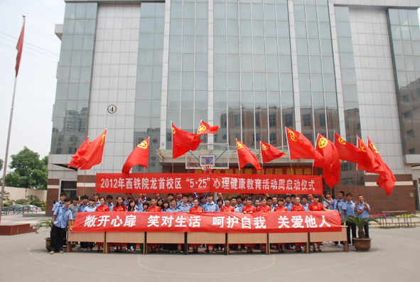 25,龙首校区团委举行了5.25”大学生心理健康教育活动周启动仪式,并进行了主题为敞开心扉 笑对生活 呵护自我 关爱他人的签名活动。校区主要领导及相关部门负责人,全体辅导员班主任,以及千余名大学生参加本次启动仪式。