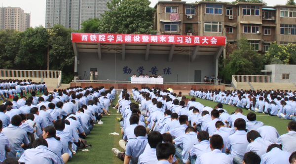 66下午,电子、交运、电气、机电四系3000多名学生在院本部操场,聆听了院长田和平学风建设暨期末复习动员讲话和党委书记安文中《加强学风建设,提升素质能力,立志成为中国特色社会主义事业合格建设者和可靠接班人》讲话。