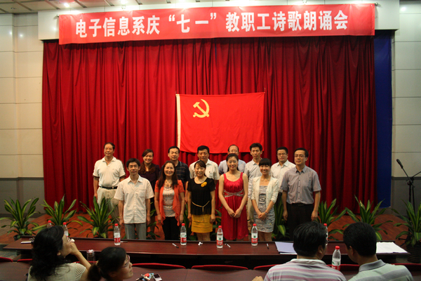 为庆祝中国共产党成立91周年,6月25日,电子信息系举办了庆“七一”教职工诗歌朗诵会,31名教职工参加了比赛。院工会副主席刘景玉、团委书记仵崇智、组织部部长任治军、宣传部部长李敏辉、党办主任张家琪、学生工作部副部长任建立以及电子信息系全体教职工和学生代表观看了比赛。