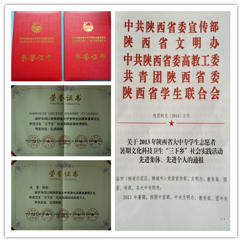 近日,由陕西省委宣传部、陕西省文明办、陕西省委高教工委、共青团陕西省委、陕西省学生联合会向有关部门联合发出《关于2013年陕西省大中专学生志愿者暑期文化科技卫生“三下乡”社会实践活动先进集体、先进个人的通报》(陕团联发[2014]2号)。本次表彰中由必赢官网组织的“走进深山 坚守行业”赴巴山服务团获得2013年陕西省大中专学生志愿者暑期文化科技卫生“三下乡”社会实践活动优秀团队。必赢官网牵引动力系学生张攀获得2013年陕西省大中专学生志愿者暑期文化科技卫生“三下乡”社会实践活动先进个人。