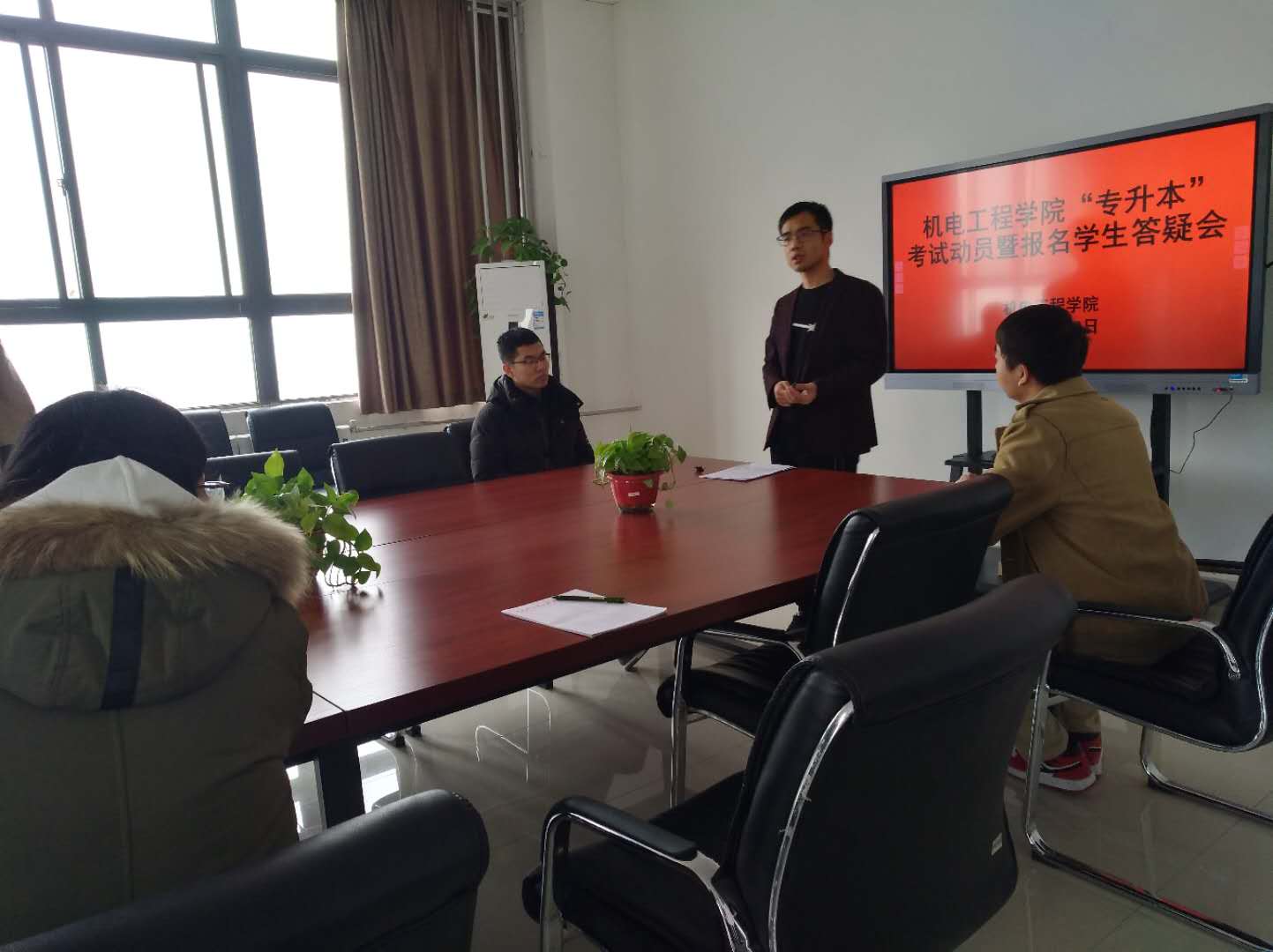 此次会议希望有意向报考“专升本”的学生提前做好准备,认真备考,同时也要积极就业,不要放弃任何一次机会。