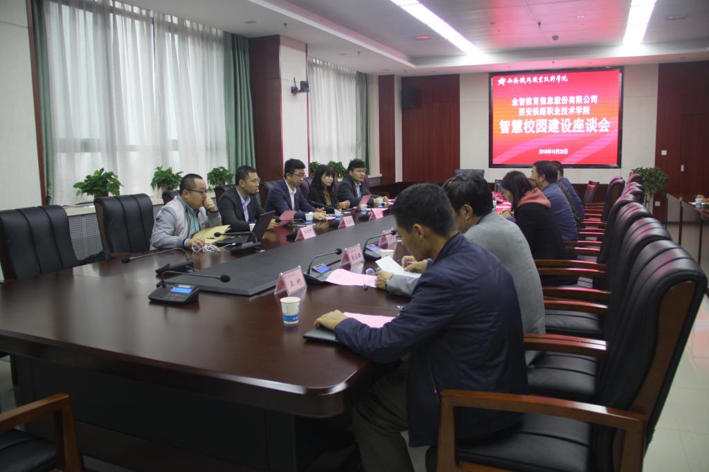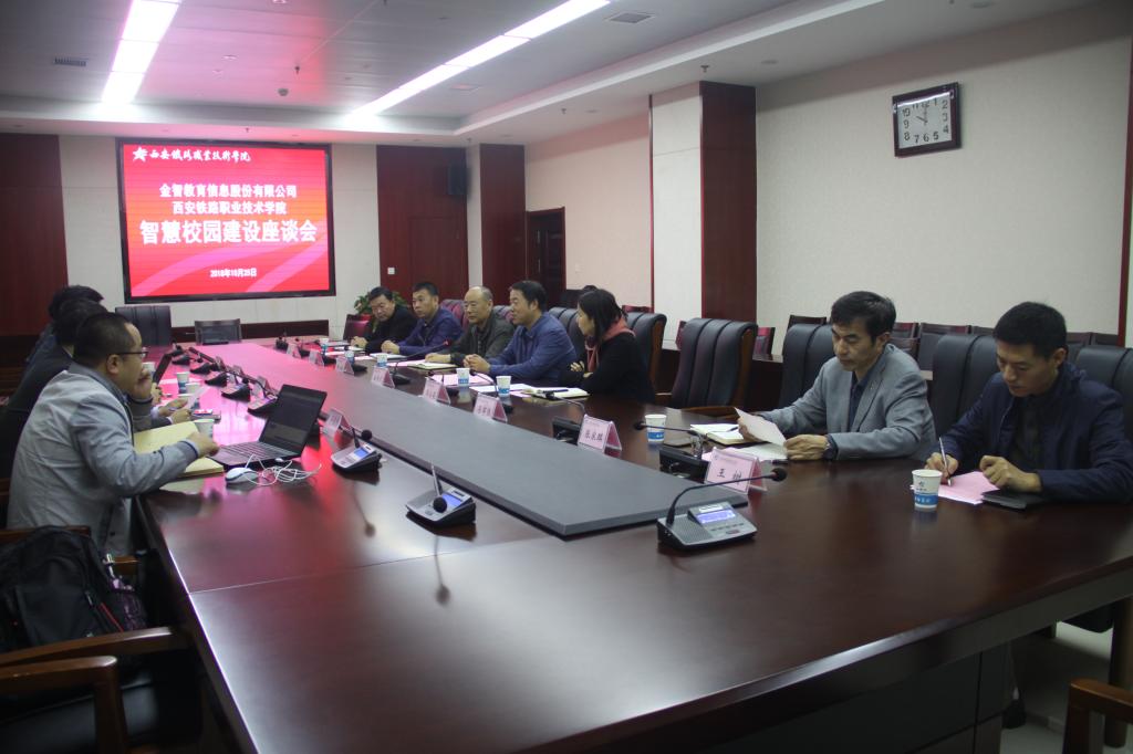 安学武向金智教育公司到学院来共同研讨学院智慧校园建设表示欢迎,并从学院的基本情况、目前信息化建设的现状、取得的成绩、存在的问题、智慧校园建设的规划等方面介绍了学院智慧校园建设的情况。