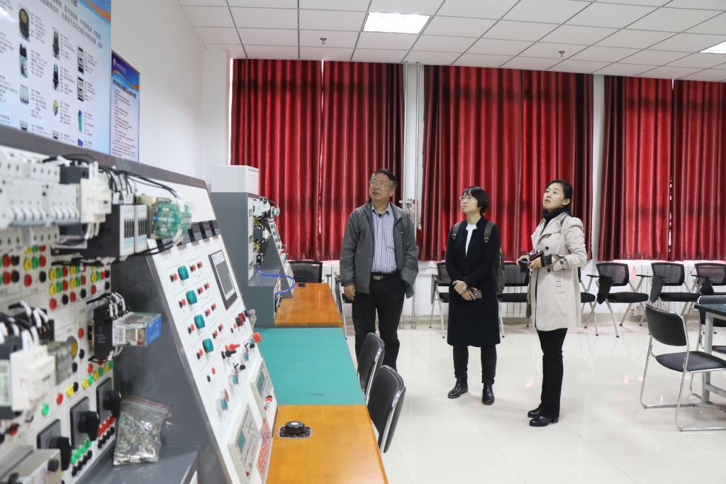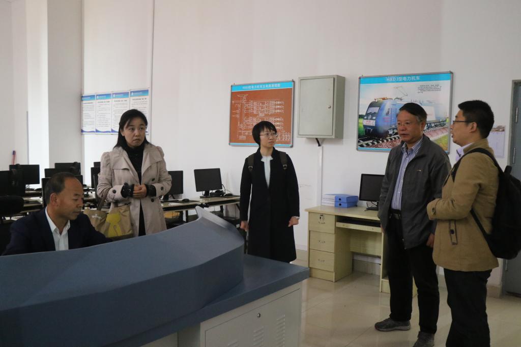 在李益民带领下,辽宁省交通高等专科学校杨翠青、姜春霞一行实地参观了铁道机车、城市轨道交通车辆技术、动车组驾驶等专业实验实训室,重点考察了HXD3型机车模拟驾驶实训室、SS4B和SS8型机车模拟驾驶实训室、CCB-II型电空制动机实训室、机车乘务员一次乘务作业实训室、CRH380AL动车组模拟驾驶实训室、城轨车辆模拟驾驶实训室、城轨车辆电器实训室、城轨车辆牵引与制动实训室、城轨车辆电路板检测实训室、城轨车辆转向架实训室、城轨车辆检查作业仿真演练系统等实验实训室以及大师·名师工作室。