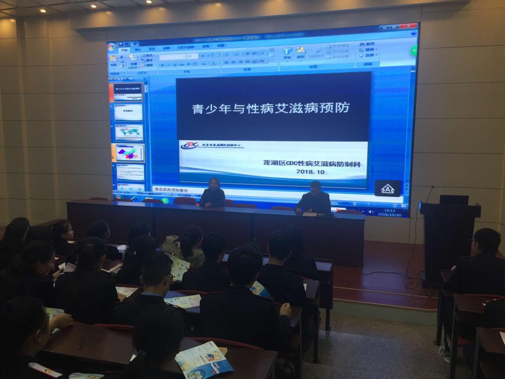 为加强必赢官网学生对艾滋病防治知识的了解和认识,进一步提高学生对艾滋病防治知识的知晓率,树立艾滋病防范意识,10月30日,自强校区综合管理处在自强校区举办了以“遏制艾滋,共建健康校园” 为主题的艾滋病防治知识讲座。