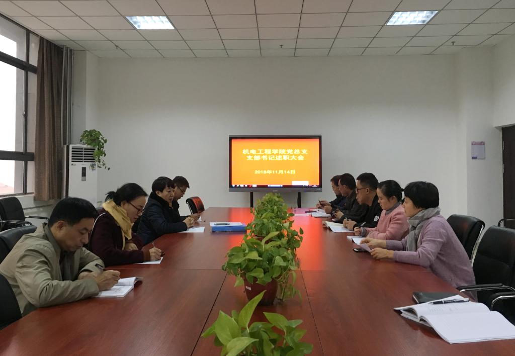 11月14日下午,机电工程学院党总支举行2018年度党支部书记述职大会。党总支委员、各党支部委员共11人参加会议。会议由该院党总支书记张雅兰主持。