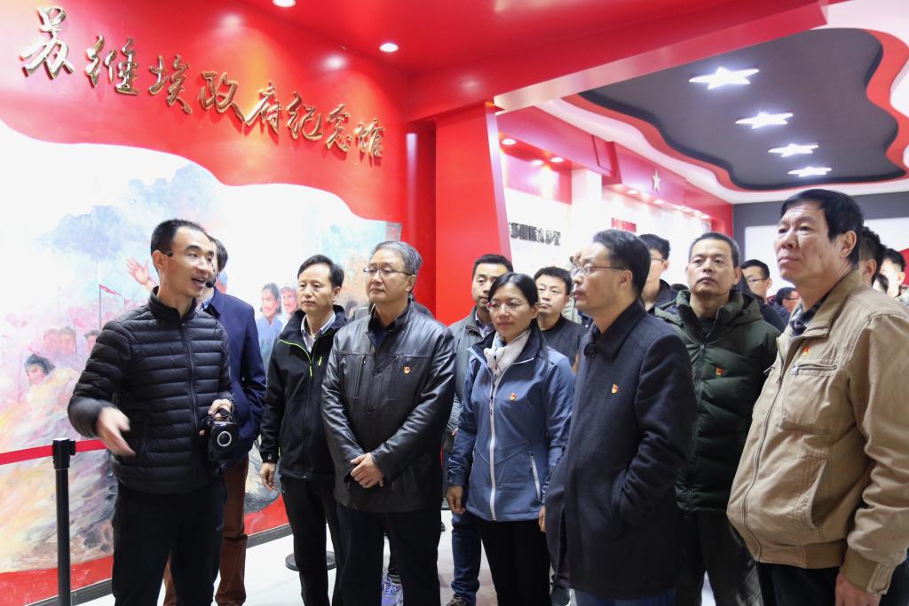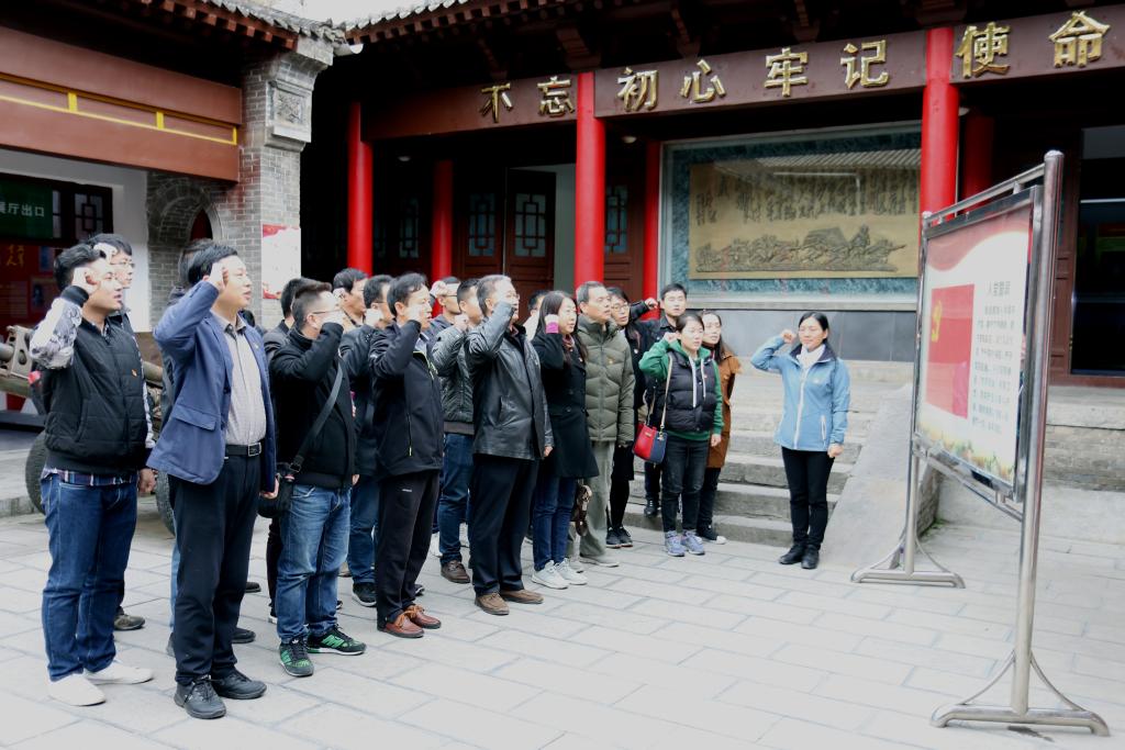 一张张图片诉说着历史的悲壮,一件件实物展示着革命的艰辛,党员们被革命先烈抛头颅、洒热血,不怕牺牲、英勇无畏的战斗精神深深感染。紧接着,全体党员高擎右手,胸带党徽,面向鲜红党旗庄严宣誓,用铿锵有力的誓言和更加纯粹的党性重温入党誓词,声音在四周回响,誓言在心中激荡,印证着自己的一颗赤诚党心。随后,大家还来到葛牌镇红军魂广场,瞻仰了革命先辈的铜像,缅怀革命先辈的丰功伟绩,党员们对“不忘初心 牢记使命”有了更加深刻的认识。