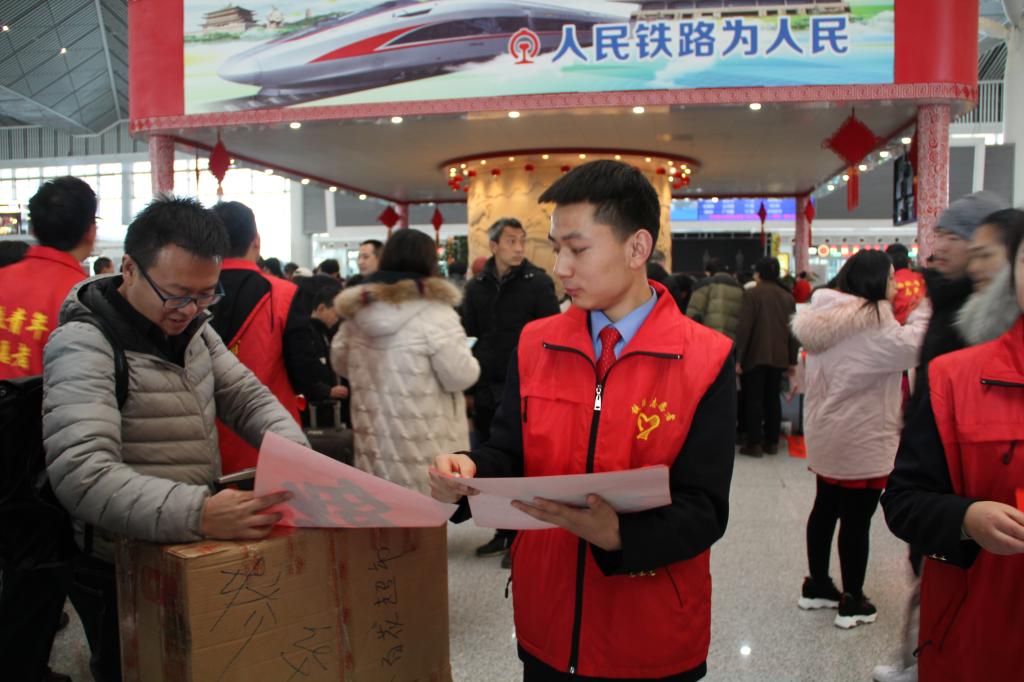 此次2019年春运“暖冬行动”,院团委于1月初在全校范围内开展了志愿者招募工作,通过志愿者招募通知的下发、各二级学院团总支初选推荐、院团委与中国铁路西安局集团有限公司团委联合面试等环节,最终从报名的500余名学生中从优确定了90名春运志愿者,分别服务于西安北站、西安站与汉中站。志愿者们将根据所在站点分配的工作任务,围绕进出站引导、配合做好站台检票、车次查询、购退票咨询、秩序维护、便民利民和帮扶重点旅客等方面集中开展春运期间的志愿服务;此外,院团委还选拔了70余名青年志愿者在西安地铁一、二号线的五路口站和北大街站开展春运“暖冬行动”志愿服务,地铁志愿者们将开展为乘客提供交通换乘咨询,在出站口的闸机和自动售票机疏导人群、维持秩序,帮助老人、孩子以及行动不便的市民乘坐地铁,帮助、引导乘客正确使用自动售票机等方面的服务。志愿者们已于1月20日完成了所在站点进行的岗前培训,领取了志愿服务保险,并根据所在站点的工作安排与要求,明确了各自的岗位职责,并进行了岗前安全考试。志愿者们在21日正式上岗,共计服务40天。
