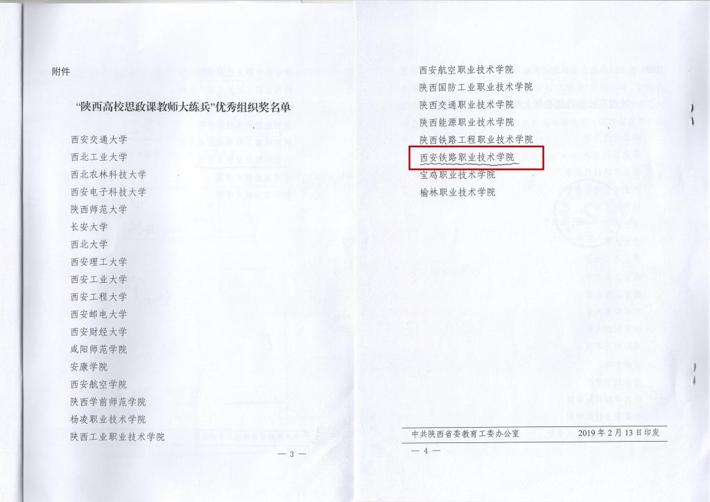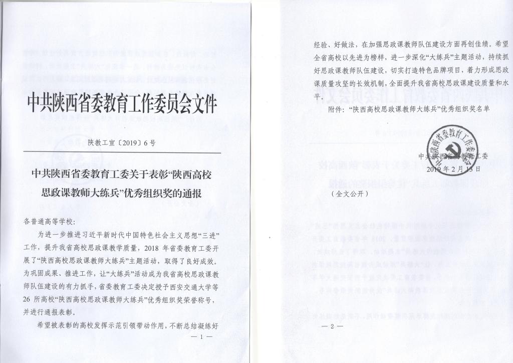 近日,根据中共陕西省委教育工委《关于表彰“陕西高校思政课教师大练兵”优秀组织奖的通报》(陕教[2019]6号),必赢官网被授予“陕西高校思政课教师大练兵”优秀组织奖荣誉称号。