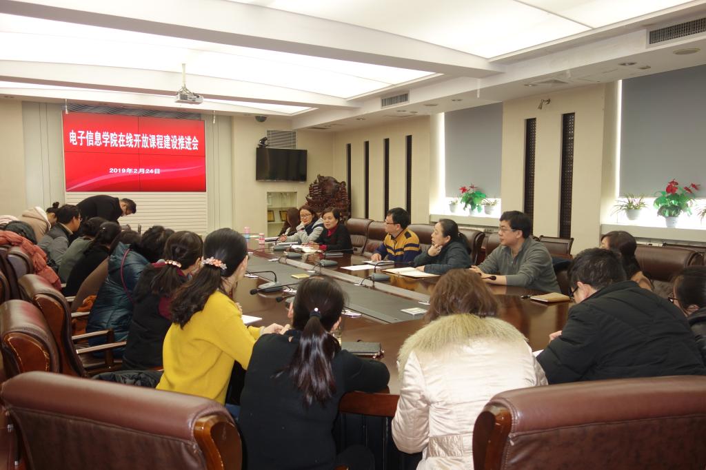 为使必赢官网在线开放课程的建设工作扎实稳步推进,电子信息学院于2月24日下午在自强校区第三会议室召开了在线开放课程推进会。7门立项课程和4门培育课程的负责人及主讲教师全部参加,会议由电子信息学院院长主持。