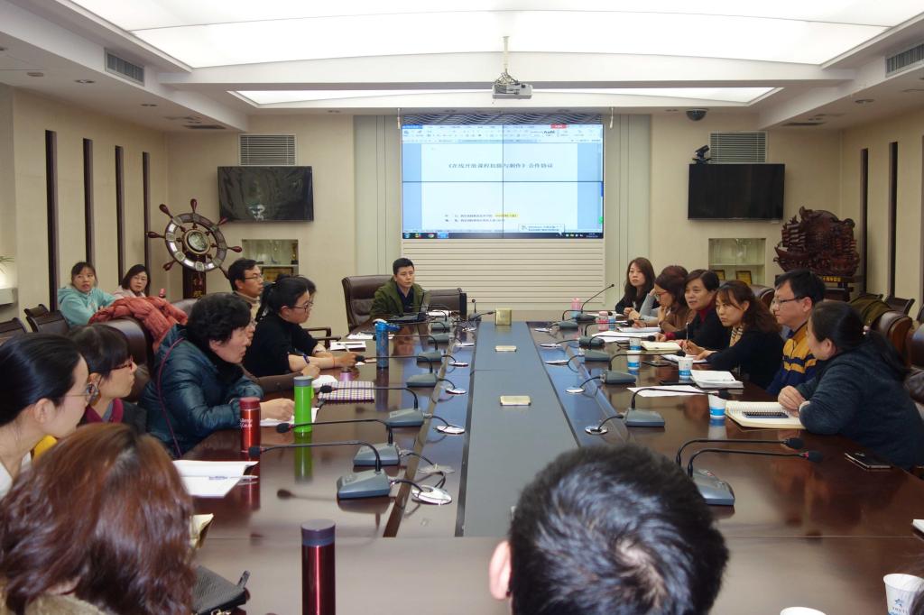 推进会上,各课程负责人从在线开放课程的建设思路、方案及建设进度等方面逐一进行了汇报。孙津平院长一一询问、详细了解每门课程的进展情况,并针对每门课程面临的问题提出了建设性意见。已是省级在线开放课程的负责人朱金坛老师向大家分享了课程建设经验,并对脚本编写、视频拍摄、课程平台应用等做了重要提示。大家共同研究讨论《在线开放课程拍摄与制作》合作协议,进行热烈讨论,明确了思路和要求,并现场建立了电子信息学院在线开放课程建设交流群,为接下来的工作搭建了沟通、学习、交流的平台。