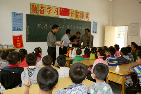 李贞伟一行在奎杨村党支部书记杨红升的带领下把学习用品交给了街办中心小学校长文华手中,文华代表全体师生感谢学院领导、帮扶工作组同志对留守儿童的关心帮助,表示将不辜负学院的期望,把学校办好,努力提高教学质量,把每个学生培养成才。李贞伟介绍了学院结对帮扶工作的情况,学院不仅对奎杨村进行经济上的帮扶,而且还很关心村民下一代的健康成长,在双节来临之际慰问留守儿童,希望他们勤奋学习,早日成才。