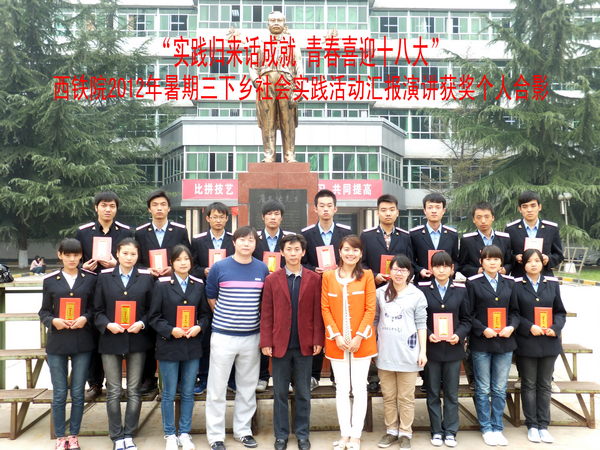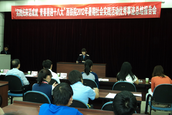 9月27日下午,学院团委在实验楼二楼大电教召开 “实践归来话成就 青春喜迎十八大 西铁院2012年暑期三下乡社会实践活动报告会”,交流和总结暑期团员青年三下乡社会实践活动,表彰优秀团队和先进个人。 21名团员青年代表对暑期三下乡社会实践活动进行了汇报演讲。88个优秀团队和个人受到了表彰。