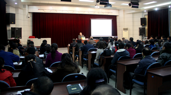 聘任仪式后,应交通运输系邀请,徐建根在大电教为百名师生作了题为“适应市场需求 转变发展方式 提高铁路运输质量和效益”的学术报告。徐建根用大量现场数据和成功案例,展示了西安铁路局为提高铁路运输质量和效益,采取的先进的运输组织方法,特别是操作演示的“中国铁路货运电子商务系统”和“西安铁路局应急指挥系统”工作流程及实现功能,给在座师生带来了铁路运输新理念、新技术的强烈震撼。