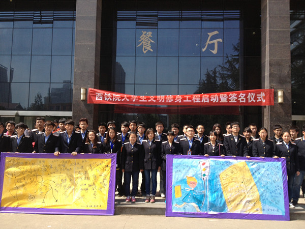 3月27日,由学院团委、学工部发起,学生会、学生社团联合会、各系团总支共同承办的“西铁院大学生文明修身工程启动暨签名仪式”在院本部举行。