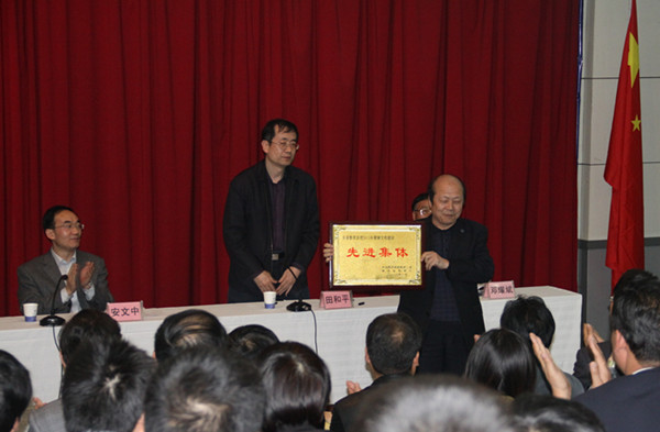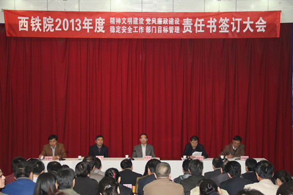 会上,学院领导班子与各部门责任人签订了2013年度“四个责任书”,与会每一位科以上干部签订了领导干部廉洁自律承诺书,大会还向获得2012年度省级精神文明建设先进单位颁发了奖牌。
