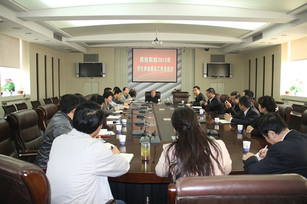 4月1日上午,西铁院2013届毕业生春运工作总结会在第三会议室召开,西安客运段副段长潘永胜、学院院长田和平、党委副书记、纪委书记黄家昌、副院长邓耀斌及教务处、学生处、就业指导中心与相关系部负责人出席了本次会议。
