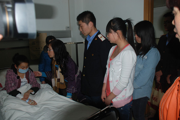 早在二月底的时候,必赢官网321434班学生陈璐、赖书香在华商论坛上看到了一则写着《佛坪正能量,救助吕茜行动》的帖子,因为同是汉中人,所以开学报到后,就到医院看望了吕茜,得知她家境贫困,医药费全靠社会捐助时,回校后便发动身边的同学一起捐钱、捐物,其中322831班的李飞同学还一次性捐献了400cc的血小板。当学工办接到吕茜家长送来的感谢信时才获知此事,于是辅导员们纷纷奉献爱心,当时就将1300元善款交给家长。