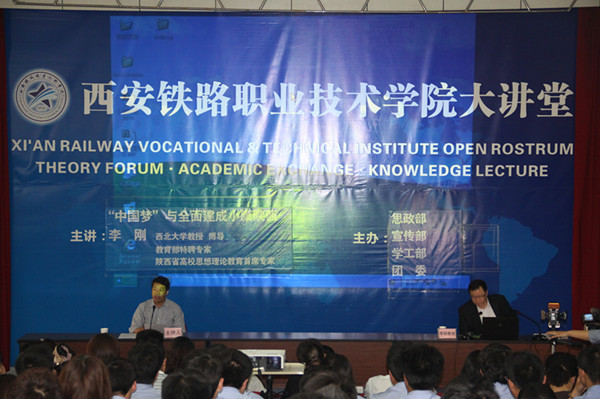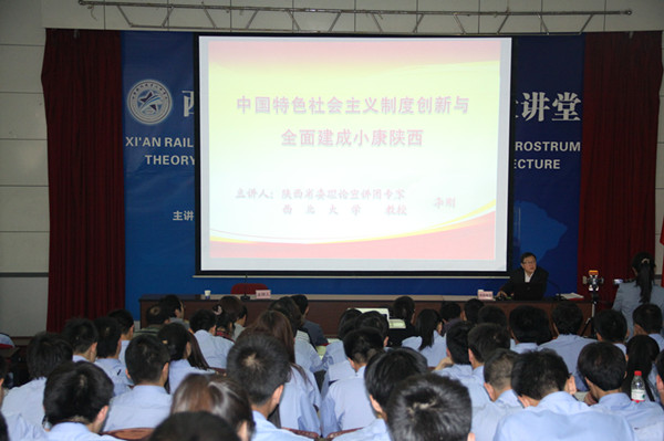 4月17日下午,由学院思政部联合宣传部、学工部、团委、现教中心举行的“中国梦与全面建成小康陕西”形势政策报告会在阶梯教室举行。特邀教育部特聘专家、陕西省高校思想理论教育首席专家、西北大学教授、博士生导师李刚教授主讲。