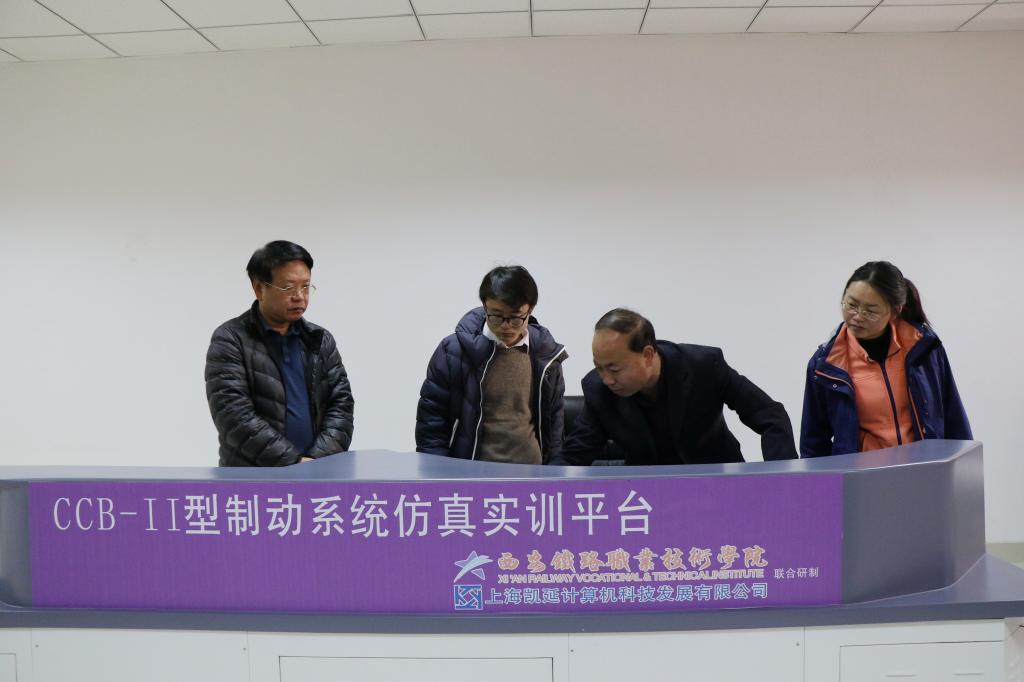 在李益民的带领下,湖南铁道职业技术学院欧阳海工程师一行重点考察了CCB-II型电空制动机实训室、车钩实训台、磁粉探伤实训室、HXD3型电力机车模拟驾驶实训室和动车组模拟驾驶实训室等实验实训室。