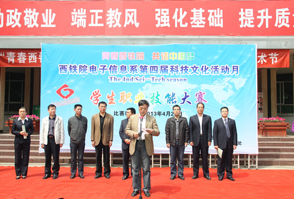 电子信息系党总支书记张伟敏宣读了本届“科技文化活动月”职业技能竞赛方案,评委教师代表冯国良和参赛学生代表马烨分别进行宣誓。黄家昌宣布“电子信息系第四届科技文化活动月”正式开始。
