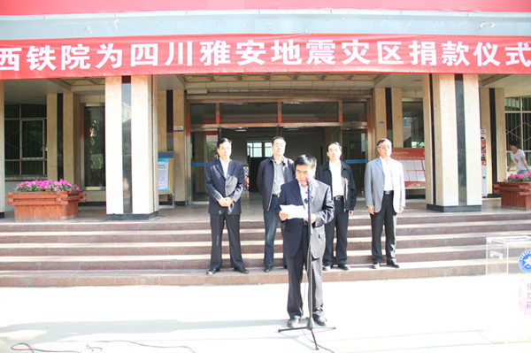 4月27日,学院在詹天佑广场举行为四川雅安地震灾区捐款仪式。党委书记安文中、院长田和平、党委副书记兼纪委书记黄家昌、副院长邓耀斌、副院长翁谦锁出席仪式并带头捐款。 捐款仪式由黄家昌主持。
