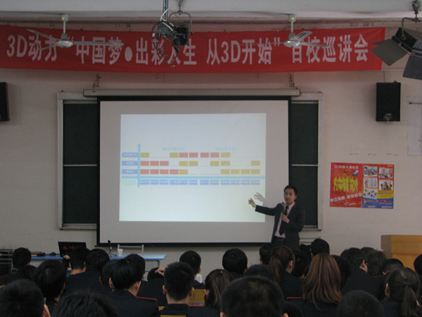 在演讲过程中,李永松以影视作品为切入点,围绕使用3DMAX建模技术对目标进行三维重建,然后利用纹理映射技术构建具有高度真实感的三维景观图,给与会者呈现了一场震撼创意的视觉盛宴,了解了3D技术的未来愿景。李永松热情洋溢、声情并茂的演讲,风趣幽默的语言和生动形象的案例多次赢得了同学们的掌声。