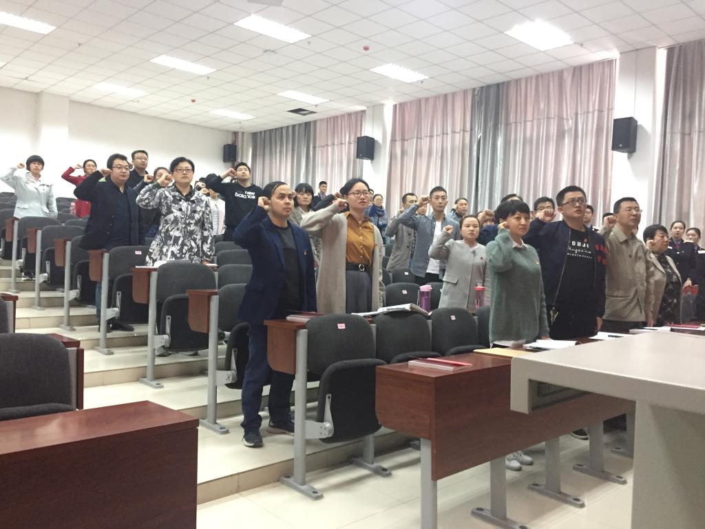 会议在雄壮的《国歌》声中拉开帷幕。会议开始,全体党员面向党旗重温了入党誓词,庄严宣誓,对党忠诚,为共产主义奋斗终生。党总支书记张雅兰在会上做党员亮身份活动动员讲话。她援引“一个党员一面旗帜,一个支部一座堡垒”、“平常时候看得出来、关键时刻站得出来、危急关头豁得出来”等经典语句,指出共产党员要始终牢记为人民服务的宗旨,时刻以合格党员的标准严格约束自己的言行,要在工作、生活、学习中创先争优、走在前列。做合格党员就要增强身份自信,敢于“亮身份”,并将其视为“必修课”。张雅兰强调,党员亮身份,就是亮出党员身份接受群众监督;党员亮身份要敢于亮底气;党员亮身份就是要亮业绩、亮奉献。党员教师要以党员这一身份为荣,更要为这一身份增添光彩。