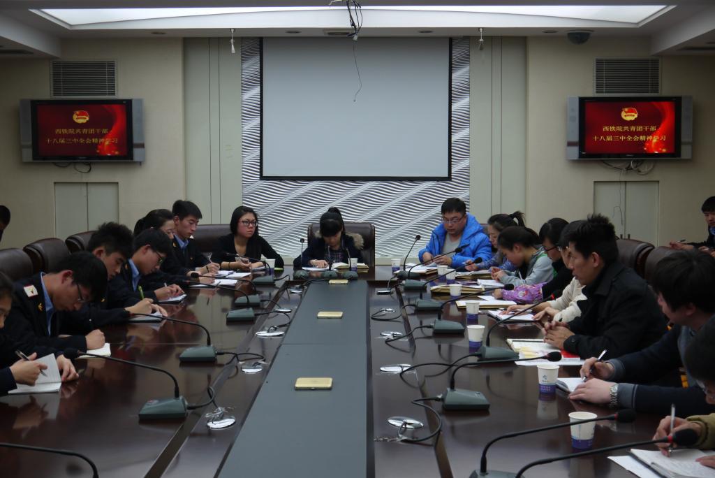 会上,团委书记仵崇智介绍了历届党代表大会之后的三中全会的历史意义,特别介绍了十八届三中全会的筹备过程,并对《中共中央关于全面深化改革若干重大问题的决定》进行了详细解读,希望西铁院广大共青团干部关注、学习三中全会精神,并在近期设计开展“拥护改革、支持改革、参与改革”的主题活动,带动全院青年迅速掀起深入学习十八届三中全会精神的高潮。与会青年教工和学生代表纷纷发言畅谈学习体会,表达了努力工作、刻苦学习、以实际行动支持党中央的淳朴愿望。